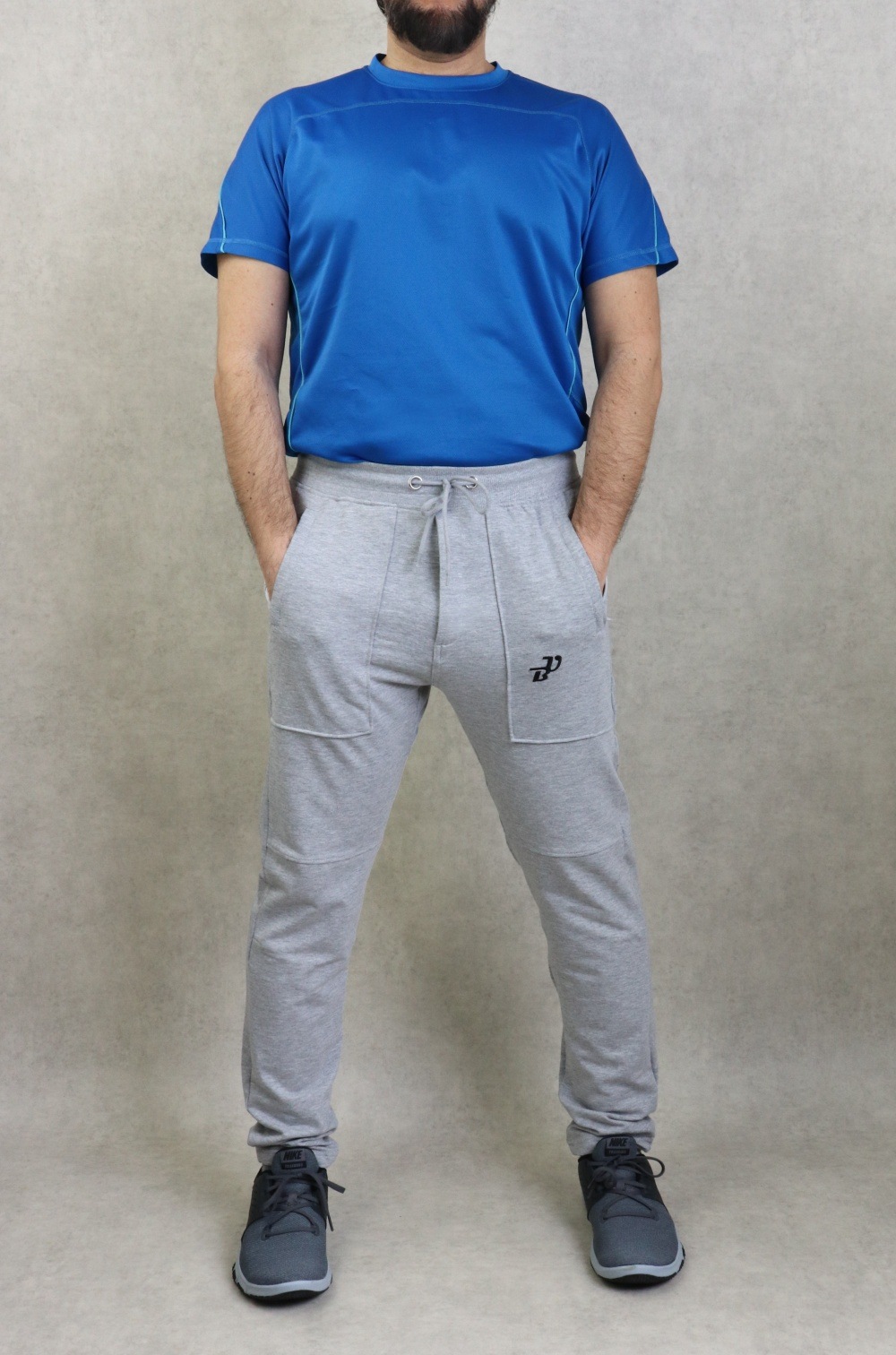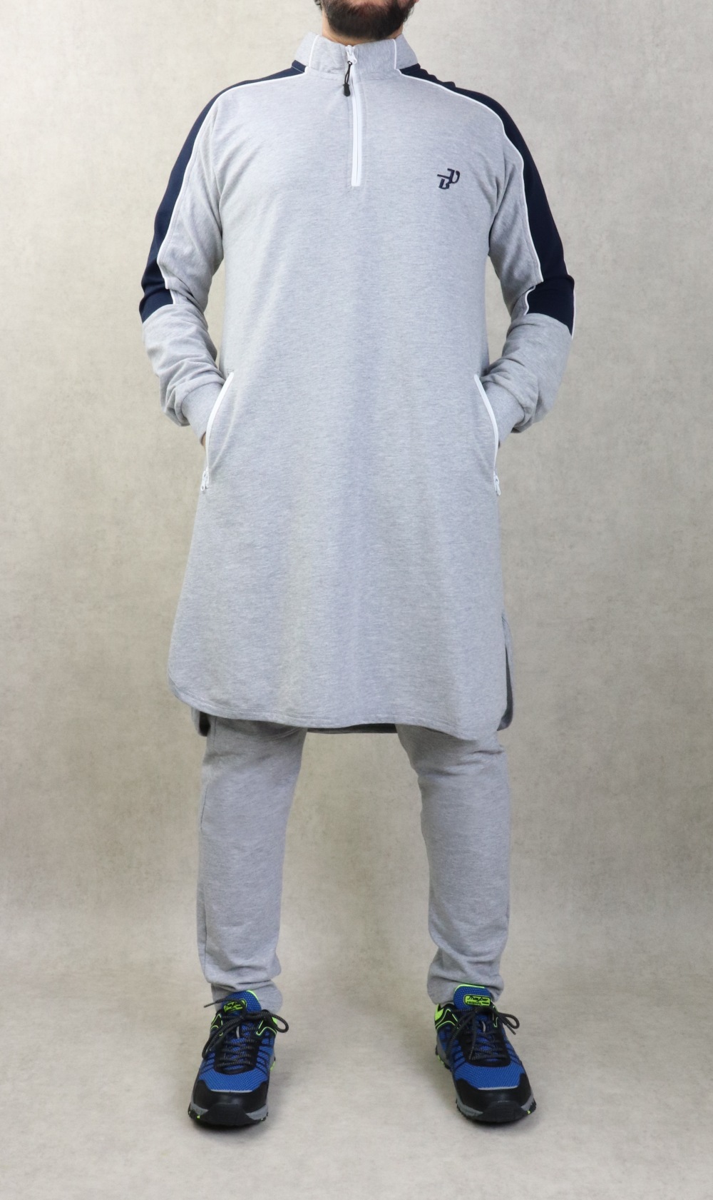 Pantalon gris clair chiné. Tissu léger et très doux. Deux grandes poches zippées latérales et une poche arrière. Braguette zip. Taille élastique avec cordon de serrage. Brodé logo BU (Best Ummah).