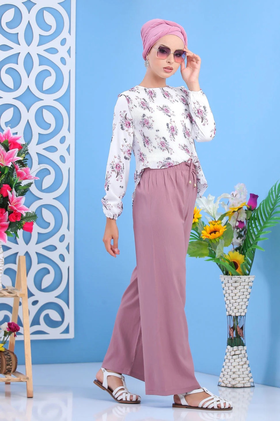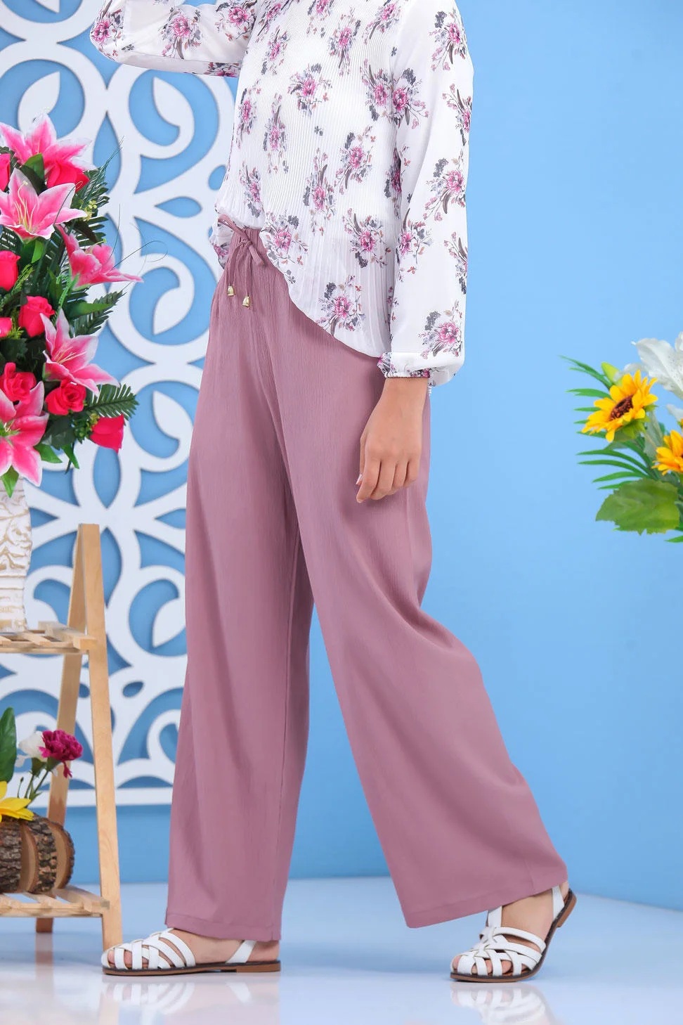 Pantalon long, coupe droite, taille élastique. Ce vêtement élégant est en tissu crêpe et fluide, accommodé d'un lien de serrage, il sera parfait pour la mi saison.
