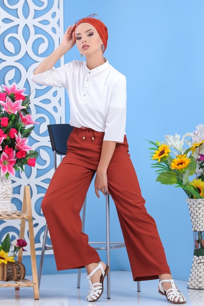Pantalon femme classique et casual (Boutique en ligne mode hijab) - Couleur brique - REF. 33904 (19.90 €)