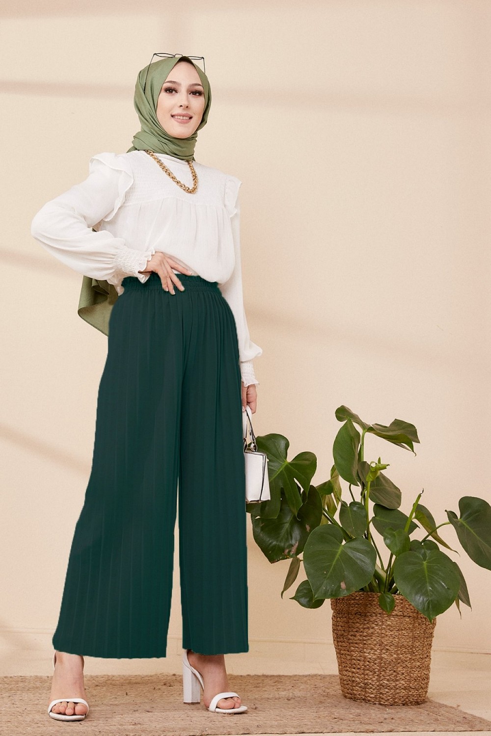 Pantalon plissé ample pour femme - Couleur vert émeraude Vetement & Accessoire