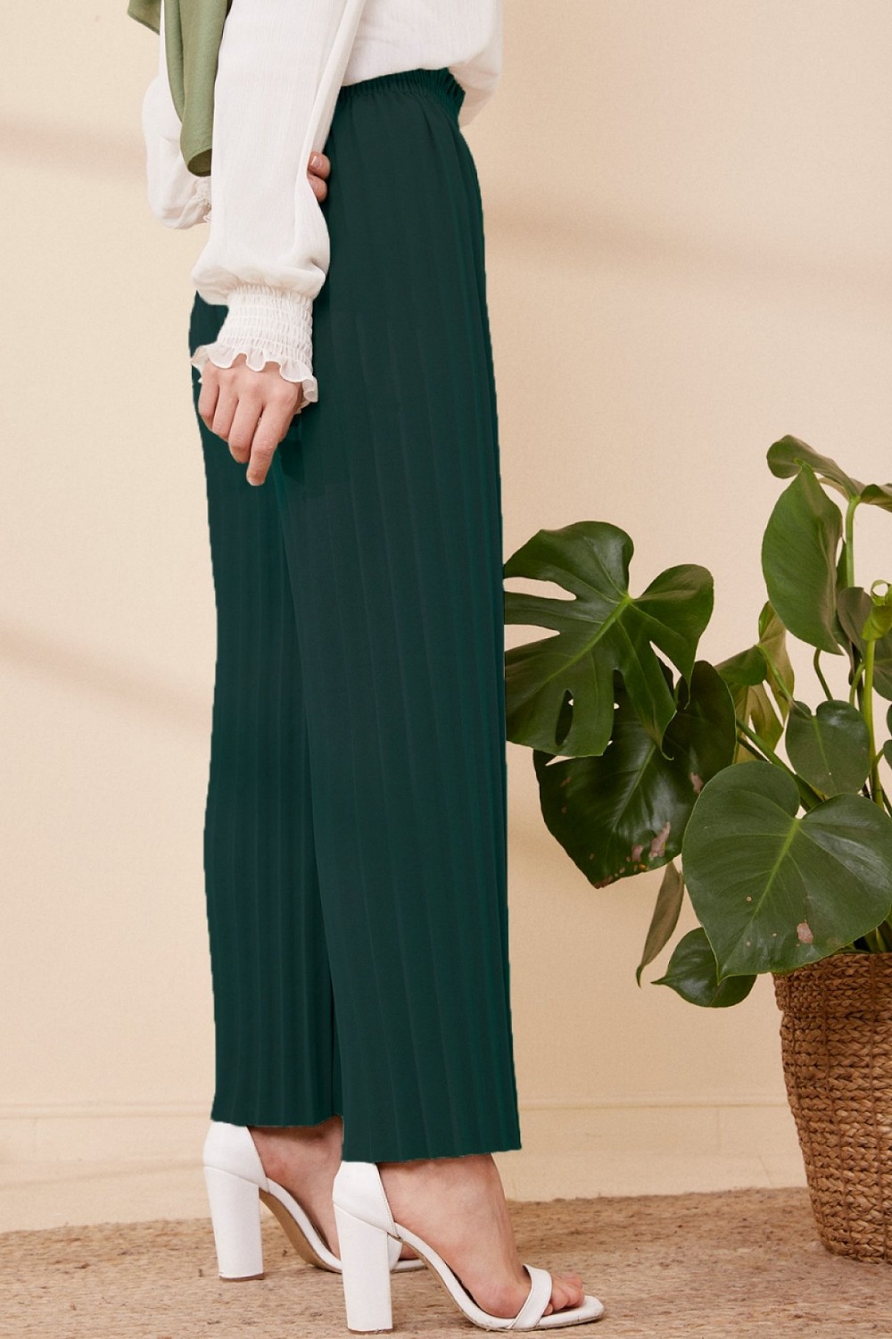 Pantalon plisse ample pour femme - Couleur vert emeraude