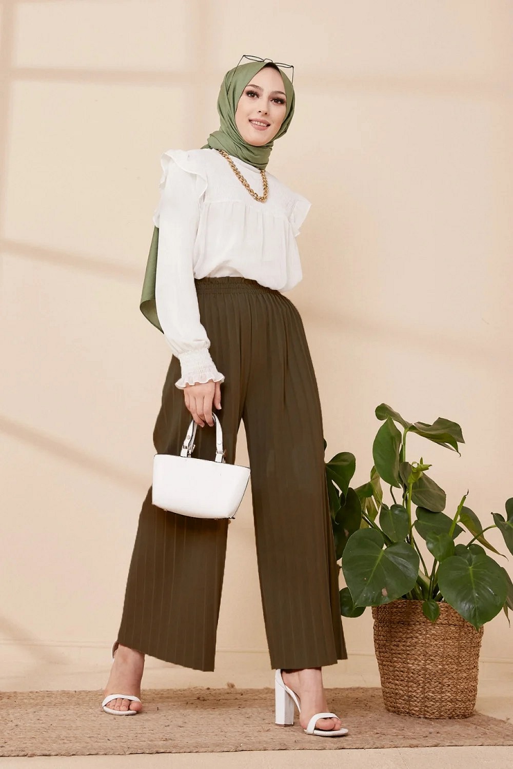 Pantalon plissé pour femme - Couleur kaki Vetement & Accessoire
