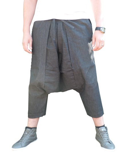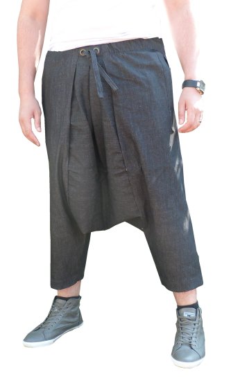 Pantalon sarouel avec 3 poches (2 latérales et 1 de derrière) en coupe 3/4 pour homme de la marque Al Haramayn Deluxe en matière jeans brut de couleur .