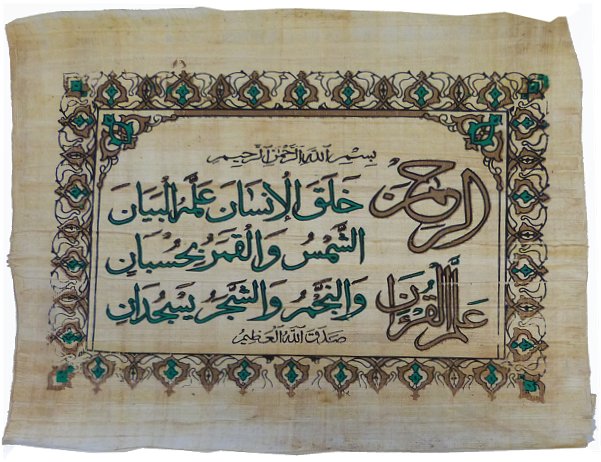 Papyrus Sourate Ar-Rahman calligraphiee -