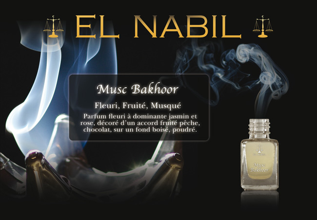 Parfum El Nabil "Musc Bakhoor" : Fleuri, Fruité, Musqué.