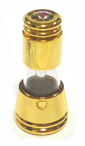 Parfum Musc d'Or - bouteille dorée métallique "Pure Musk" (3 ml). Parfum mixte (hommes et femmes). Bouchon avec tige, orné d'un diamant, se visse.
