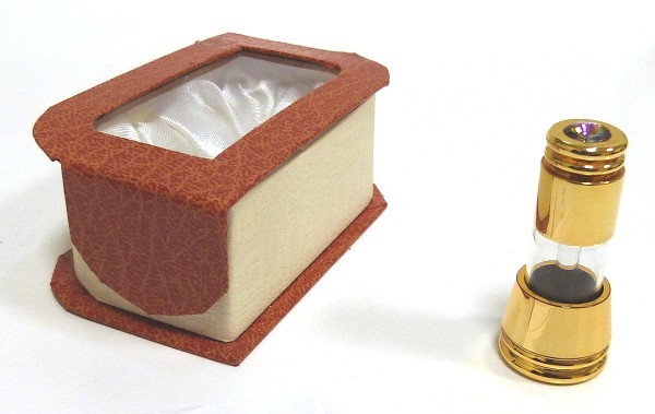 Parfum Musc Warda - Bouteille métallique dorée coeur bronze blasé sur amphore - REF. 10000 (14.00 €)