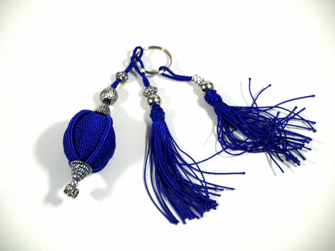 Pendentif/Porte-cles artisanal fabrique a la main en sabra - Bleu