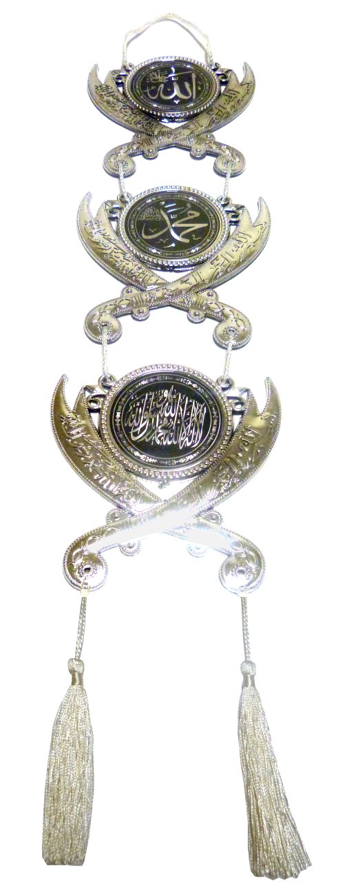 Objet décoratif islamique avec le Nom d'ALLAH, La Besmala et la Chahada (Attestation de foi musulmane) - REF. 24046 (3.90 €)