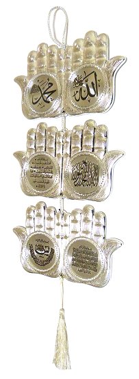 Pendentif argente en 3 parties, chacune avec 2 mains en signe d'invocation