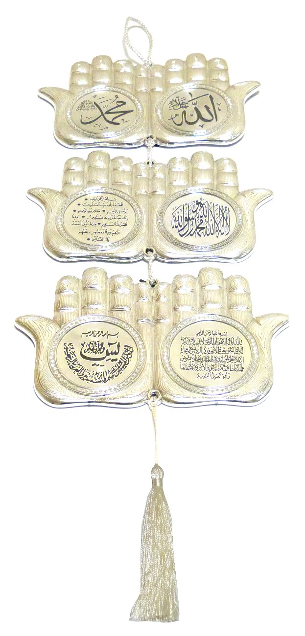 Tableau décoratif argenté avec inscriptions des sourates Yâsîn et Ayat Al-Koursî (Le Verset du Trône) - REF. 21758 (5.90 €)