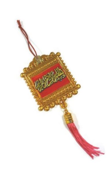 Pendentif carré doré pour voiture avec inscriptions islamiques.