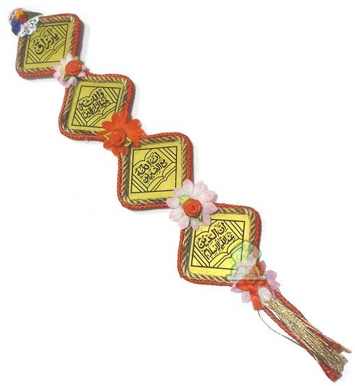 Décoration islamique argentée avec pompons en 3 parties contenant des inscriptions islamiques en arabe (Sourates, verset du Trône, etc.) - REF. 20291 (7.50 €)