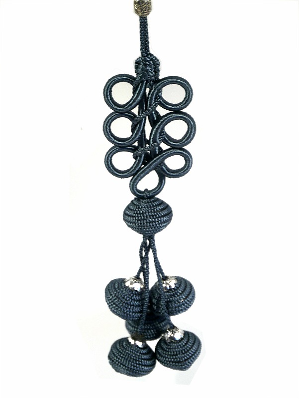 Pendentif de decoration / Porte-cles artisanal en sabra avec pompons - Gris