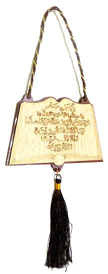 Pendentif de decoration avec pompon sculpte contenant l'invocation du voyage (Dua' As-Saffar) pour la voiture