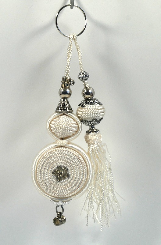 Joli Pendentif décoratif / Porte-clés fabriqué entièrement à la main par un artisan de Marrakech. Tout blanc, il possède de beaux ornements.