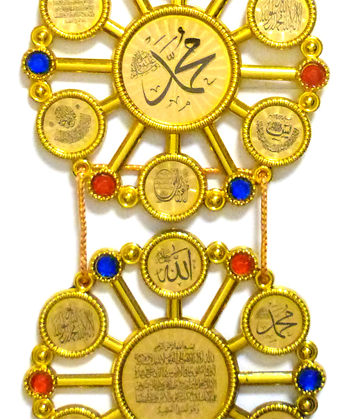 Objet décoratif islamique avec le Nom d'ALLAH, La Besmala et la Chahada (Attestation de foi musulmane) - REF. 24046 (3.90 €)