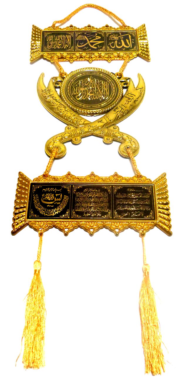Pendentif dorée de décoration avec Bassmalah, Le nom de prophète (saw) et Sourate Yassin - REF. 23992 (3.90 €)