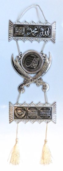 Décoration argentée avec inscriptions Sourates "Al Fatiha", "Al-Ikhlâss" et "Al-Falaq" - REF. 21749 (8.50 €)