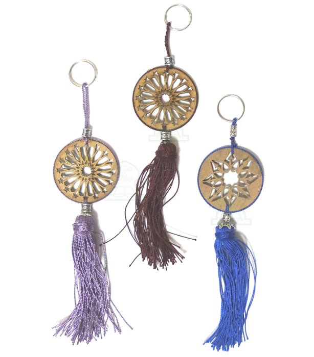 Gamme "Pendentif ou porte clé bois sculpté d'arabesques et pompon en sabra"