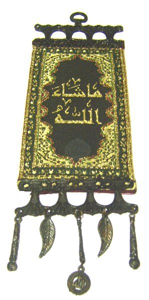 Pendentif tisse dore "Masha-Allah" avec parties metalliques