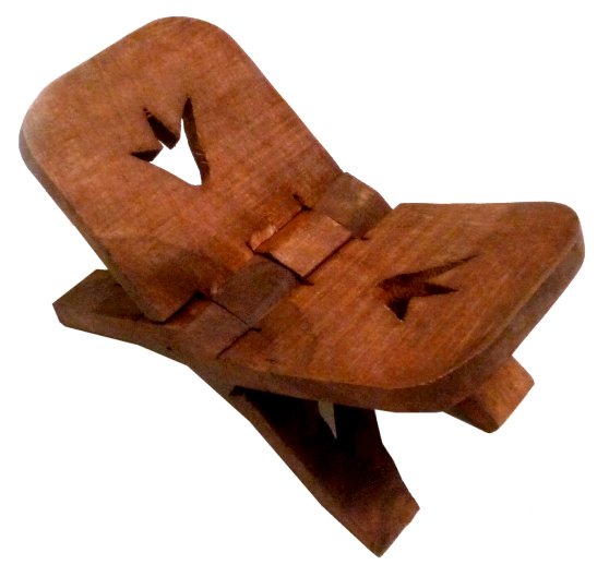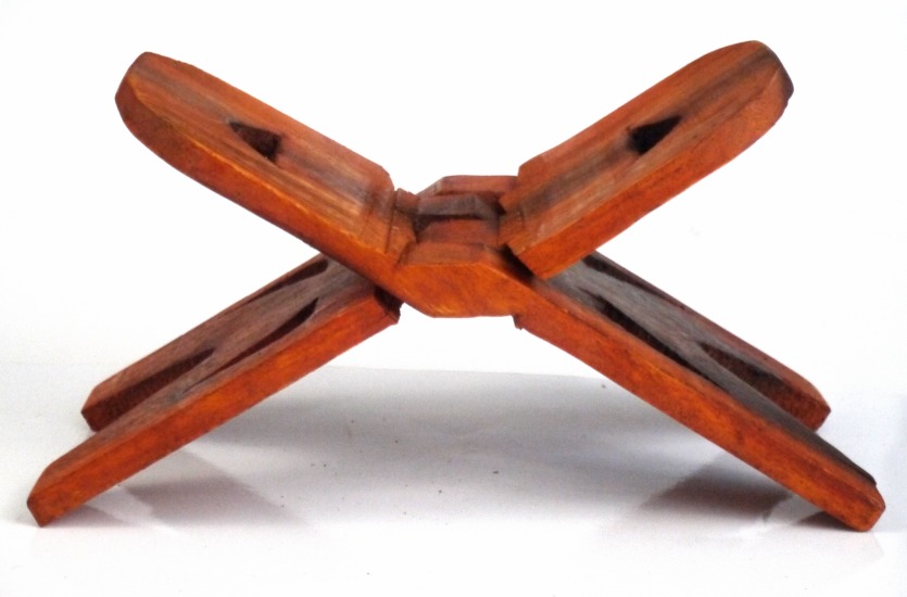 Sculpté en bois, pratique pour y poser un livre lorsqu'on s'assoit par terre pour lire et méditer. Facile à ranger (se plie). Généralmeent utilisé dans les mosquées ou les maisons pour lire le Coran.