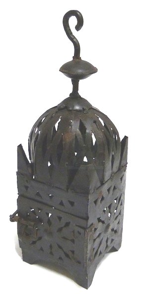 Cette lanterne est fabriquée en fer forgé, décoré de magnifiques ciselures sur toutes ses facettes, rappelant les motifs andalou-maghrébins.