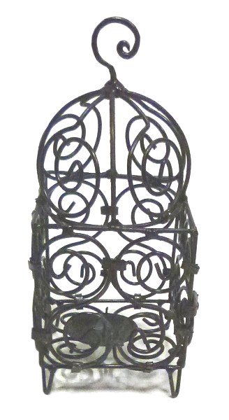 Petite lanterne marocaine de type Slimani en fer forgé marron terne garni de ciselures - REF. 15553 (19.90 €)