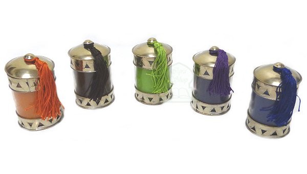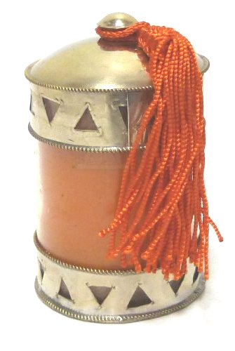 Photophore / Bougie parfumée en verre avec couvercle en métal argenté ciselé et martelé terminé d'un pompon en Sabra - Modèle orange - REF. 16643 (12.00 €)