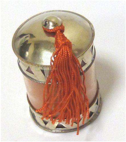 Photophore / Bougeoir en verre avec bougie cerclee de metal argente cisele termine d'un pompon en Sabra - Modele orange