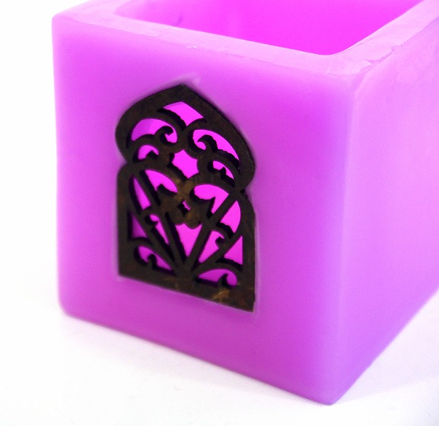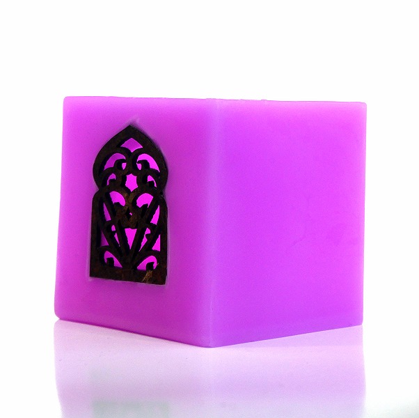 Photophore Marocain de forme cubique en cire orné d'un thème arabesque sous forme de porte pour créer une splendide ambiance. Glissez une bougie chauffe-plat, il diffusera une lumière douce et tamisée pour une ambiance orientale . Original par sa forme A poser sur votre table, sur une étagère ou sur les bords d'une piscine, baignoire ...