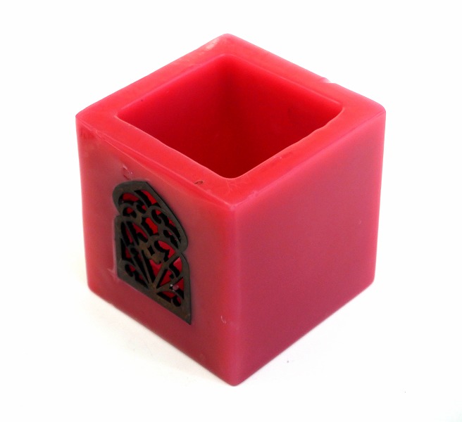 Photophore Marocain de forme cubique en cire orné d'un thème arabesque sous forme de porte pour créer une splendide ambiance. Glissez une bougie chauffe-plat, il diffusera une lumière douce et tamisée pour une ambiance orientale . Original par sa forme A poser sur votre table, sur une étagère ou sur les bords d'une piscine, baignoire ...