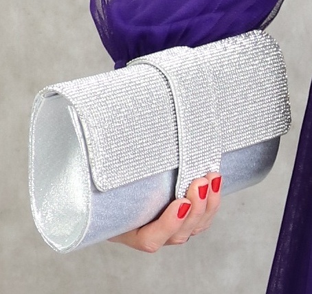 Sac à main femme entièrement recouvert de strass, anse métallique ronde pour soirée, mariage et fête - Couleur argenté - REF. 32181 (25.00 €)
