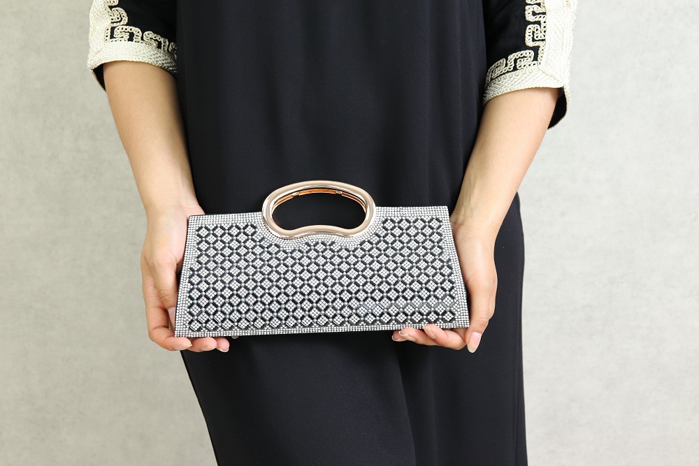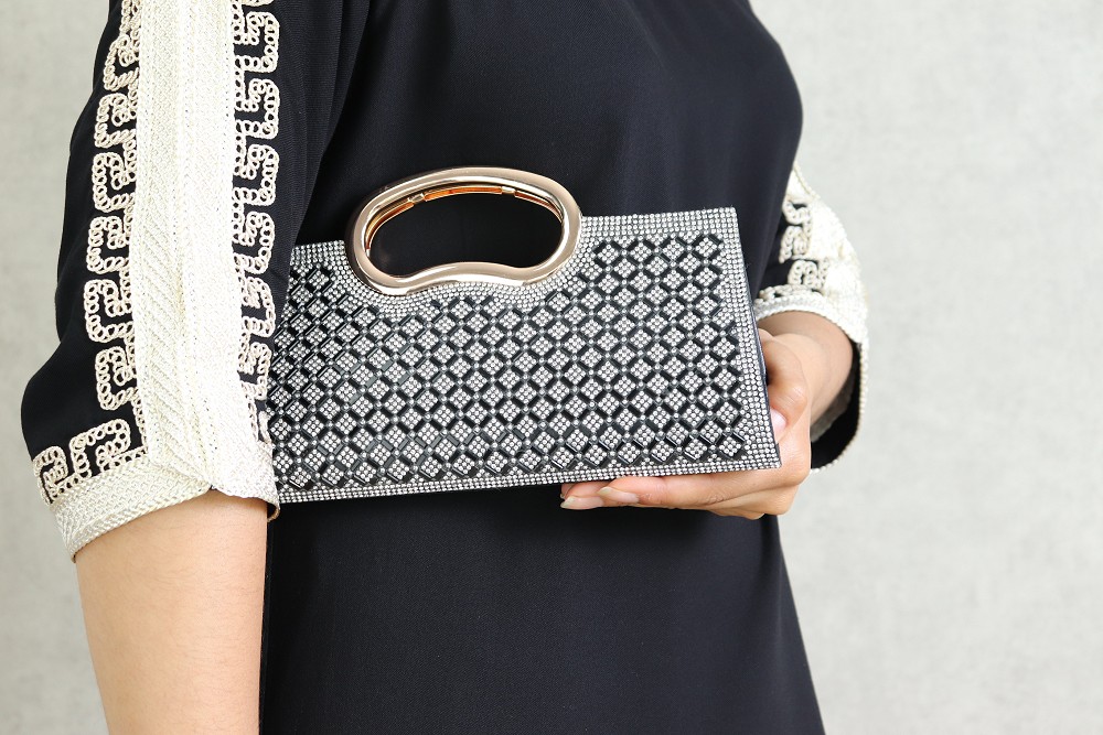Pochette de soirée à poignet métallique - Sac à main élégant pour femme - Couleur Noir Vetement & Accessoire