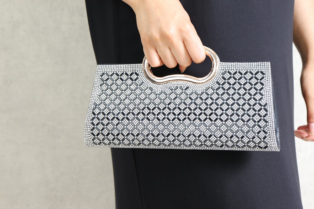 Sac à main femme entièrement recouvert de strass, anse métallique ronde pour soirée, mariage et fête - Couleur argenté - REF. 32181 (25.00 €)