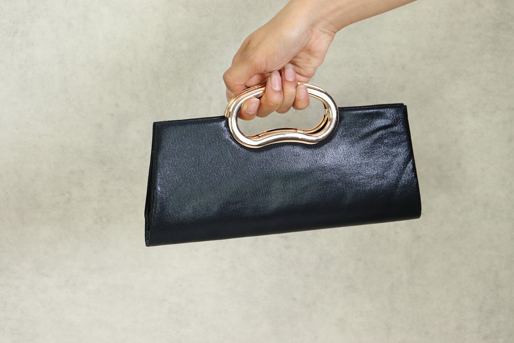 Pochette de soiree a poignet metallique - Sac a main elegant pour femme - Couleur Noir
