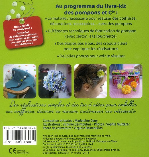 Des accessoires et de la laine aux couleurs délicates pour fabriquer ses propres pompons. différentes techniques de confections pompons originales (avec du carton, à l'aide d'une fourchette...). Des idées de coiffures, de bijoux, de décoration et de petits cadeaux à offrir à ses amies.
