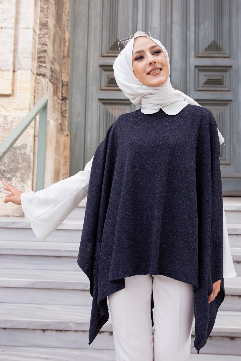 Poncho pour femme (Cape pour toutes les saisons) - Couleur bleu marine Vetement & Accessoire