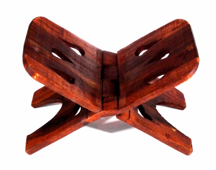 Sculpté en bois, pratique pour y poser un livre lorsqu'on s'assoit par terre pour lire et méditer. Facile à ranger (se plie). Généralmeent utilisé dans les mosquées ou les maisons pour lire le Coran.
