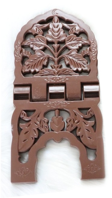 Sculpté en bois, pratique pour y poser un livre lorsqu'on s'assoit par terre pour lire et méditer. Facile à ranger (se plie). Généralmeent utilisé dans les mosquées ou les maisons pour lire le Coran.