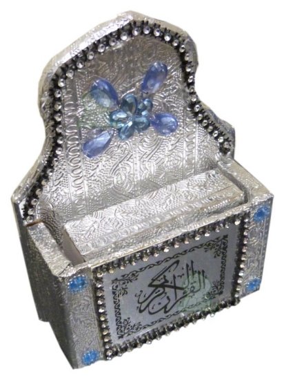 Porte Coran (fourreau) argente avec decorations et son Coran assorti