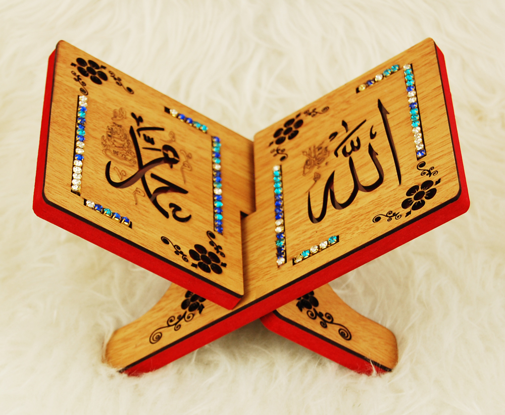 Porte Coran traditionnel en bois decore - Support Livre (13 x 20 cm)