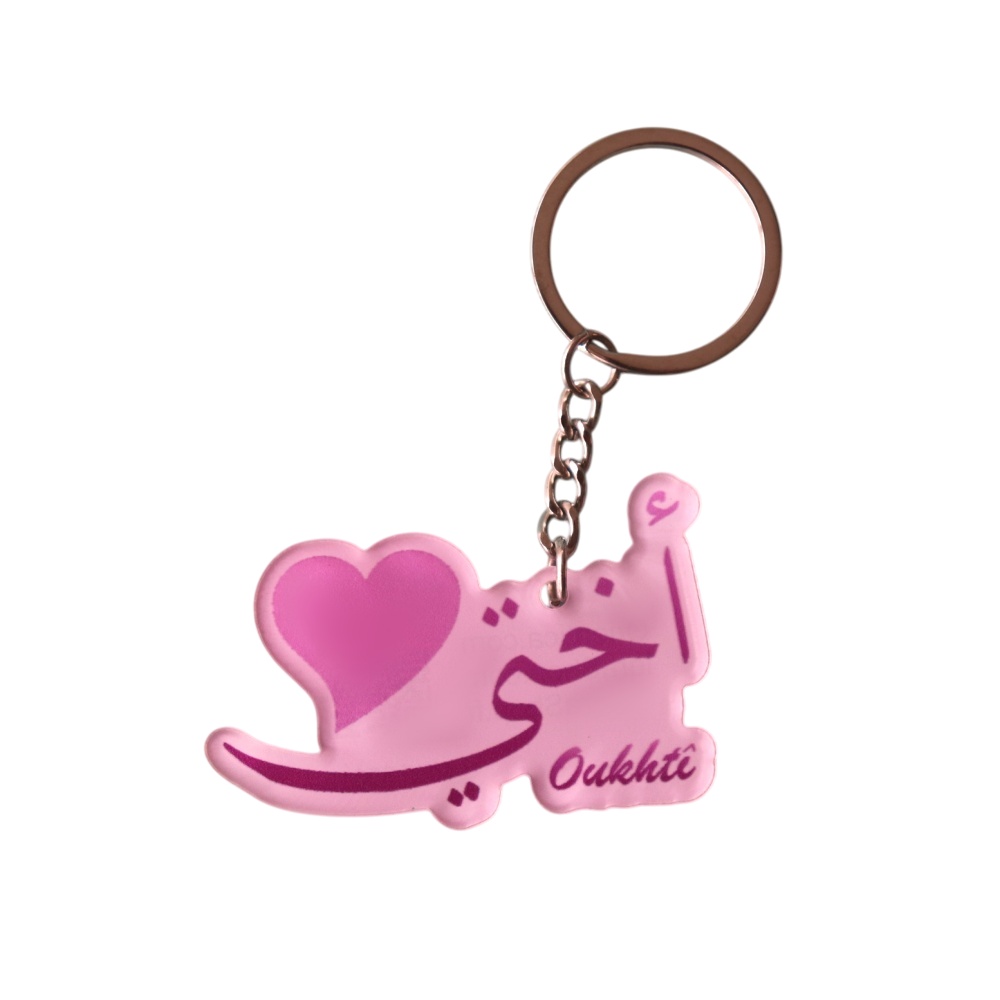 Porte clé "Oukhtî أختي" (Ma soeur en arabe). Existe également en mug (grande tasse à offrir).