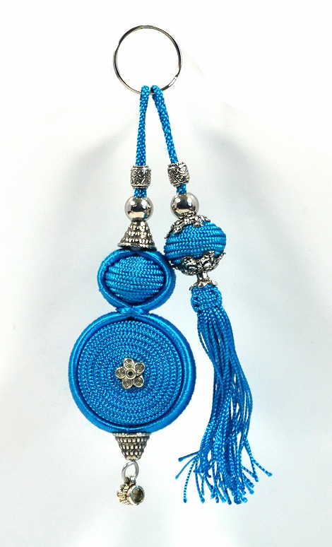 Pendentif / Porte-clés artisanal en sabra avec pompons - Bleu - REF. 29051 (4.90 €)