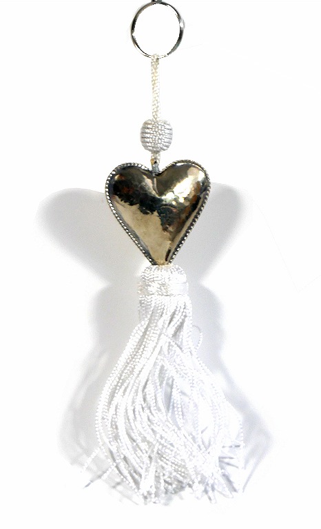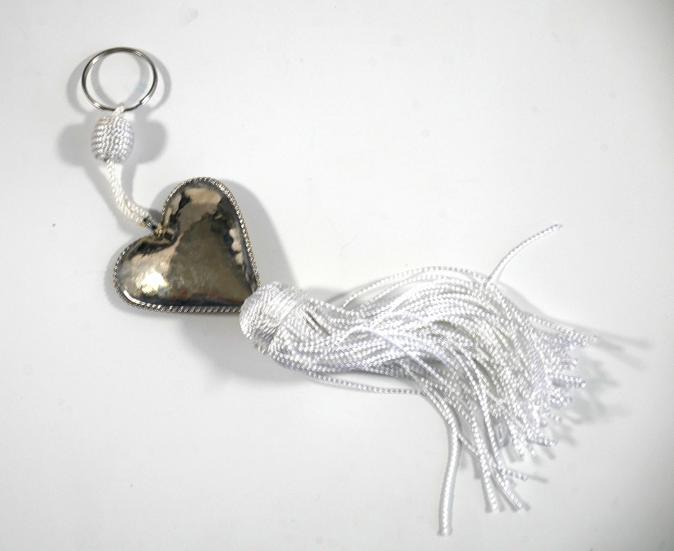 Porte-clés en métal argenté joliment ciselé, constitués de breloques, grand coeur, et de pompon en sabra, avec 8 coloris disponibles... De jolis agréments argentés font de ces porte-clés des pièces originales.