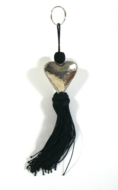 Vous vous sentez perdu au milieu de toutes les clés que vous possédez ? Vous oubliez souvent où vous les avez laissées ? Offrez-vous ce porte-clés avec cœur en métal argenté et pompon de décoration et vous ne perdrez plus aucune clé !