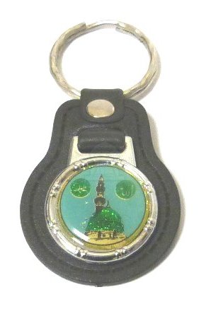 Porte-cles en forme de medaillon portant une representation de la mosquee du prophete (Al-Masjid An-Nabawi) -