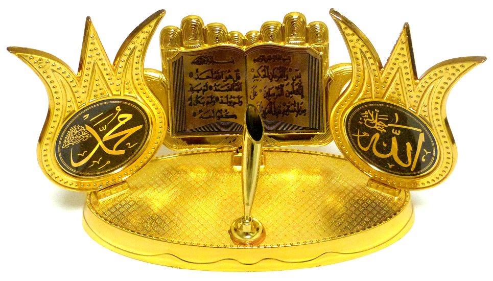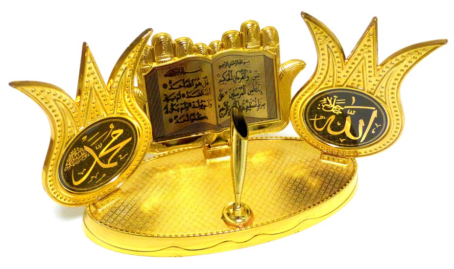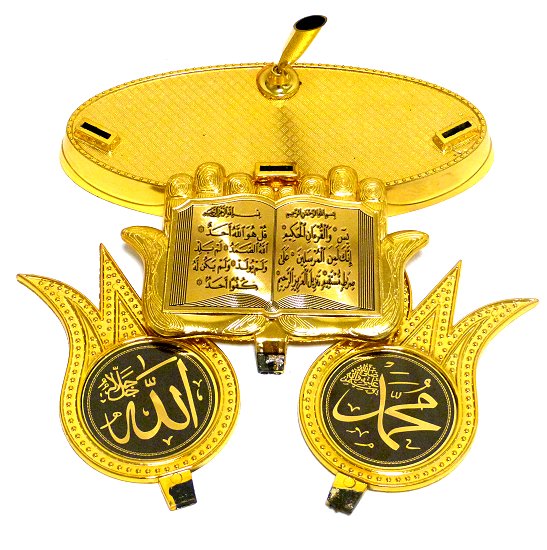 Objet décoratif doré avec la Basmalah, Sourate Al-Fatiha et Sourate Yassine - REF. 23995 (3.90 €)