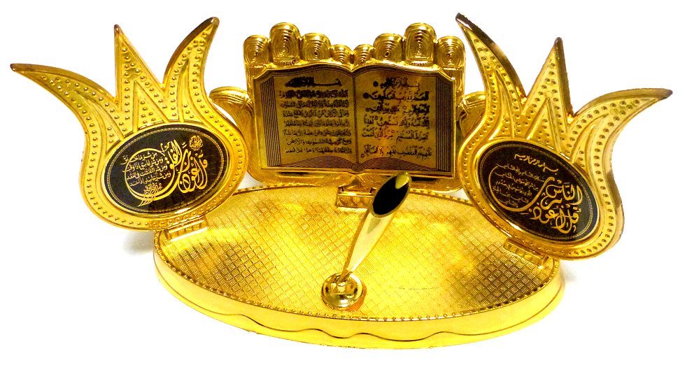 Garniture sous forme de porte-stylo doré pour décorer votre bureau (avec sourates) - REF. 20834 (10.00 €)
