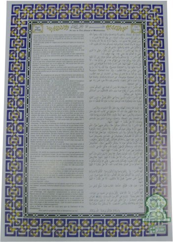 "Réfléchissez bien à ce message que je vous ai communiqué, Ô Musulmans. Je vous laisse deux guides qui ne vous permettront pas de vous égarer, si vous vous y conformez : le Livre de Dieu et la Tradition de Son Prophète."